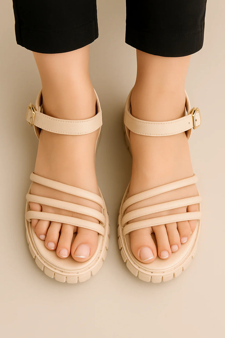 Chic and versatile "Sienna- Strappy Wedges" with sleek straps, offering a perfect blend of elegance and comfort for any occasion.