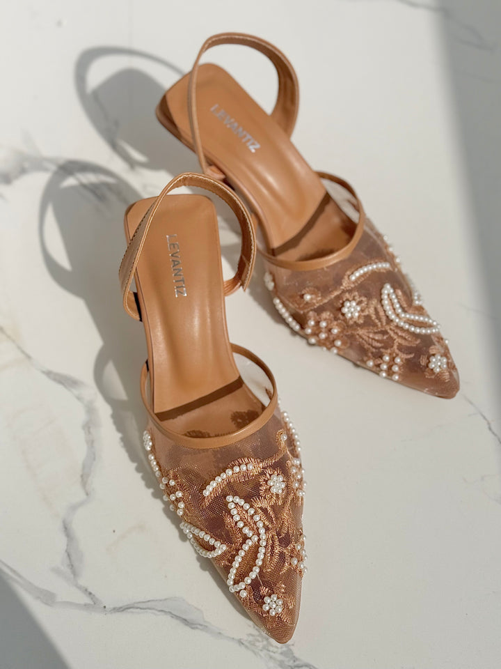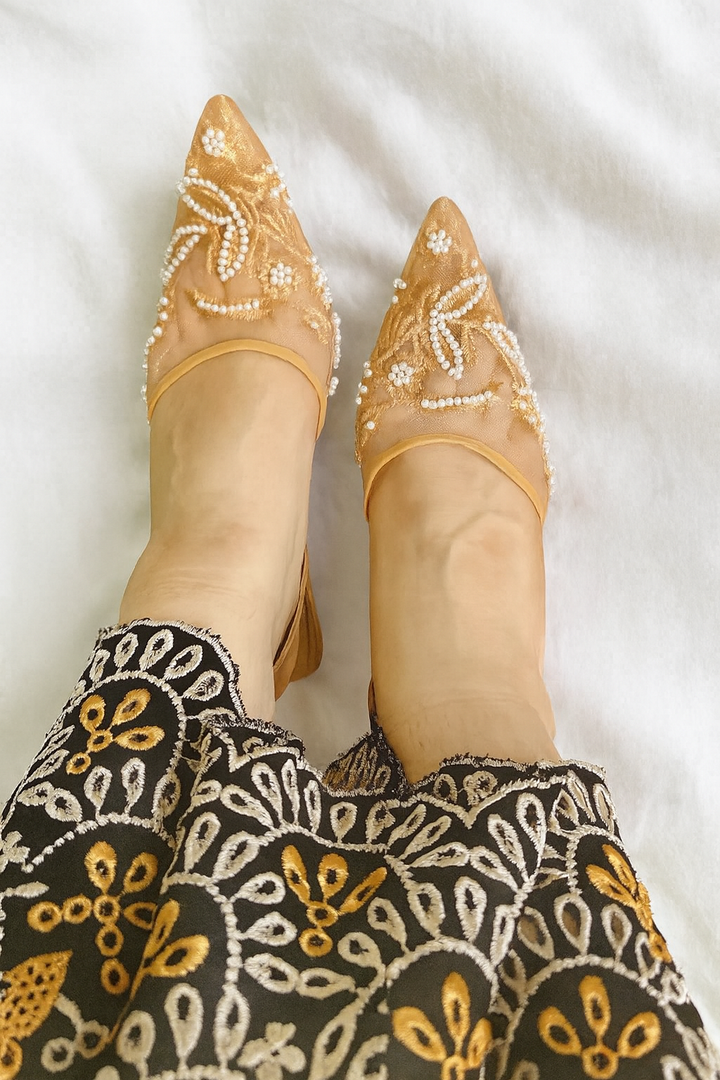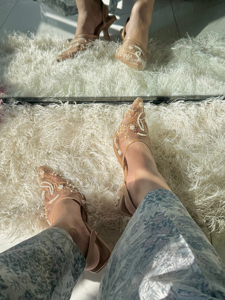 Elevate your ensemble with our pearl embroidered heels — where effortless style meets lasting comfort in every step.”