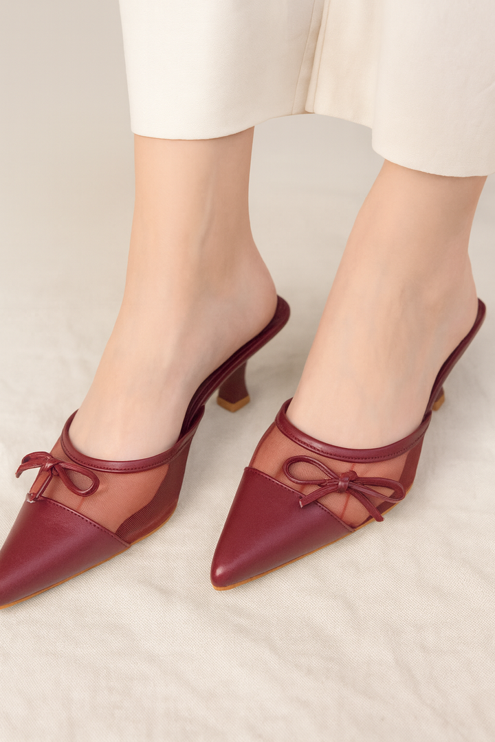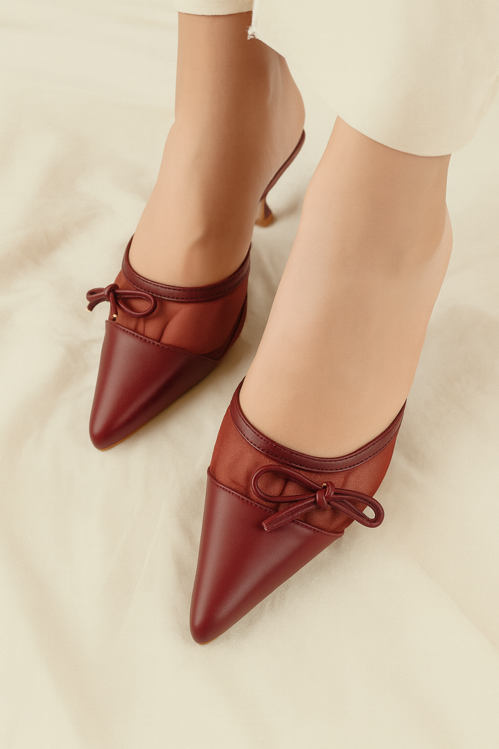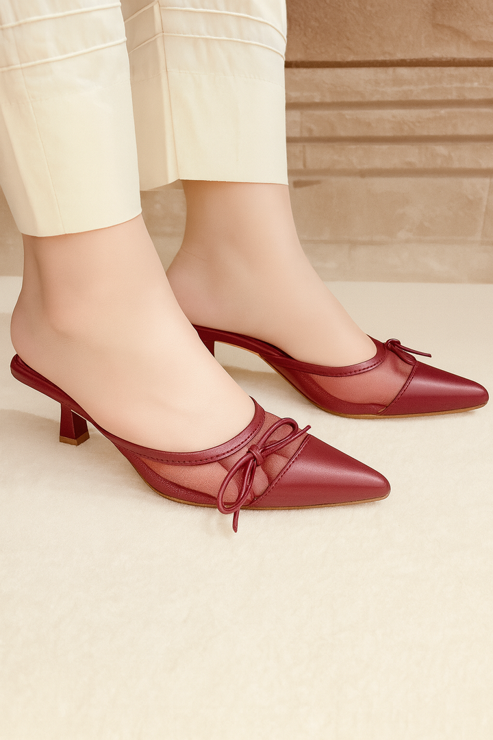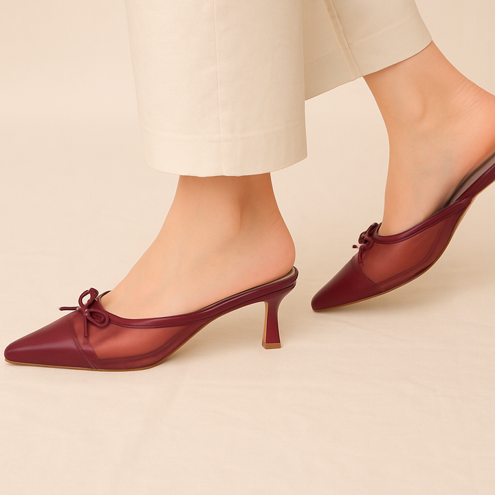 Elevate your ensemble with our bow net heels — where effortless style meets lasting comfort in every step.”
